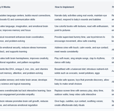 - Parental Interaction is Crucial: Consistent, loving engagement builds both neural and emotional foundations.
